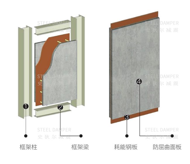 Buckling restrained wall is a new type of energy dissipation and shock absorption product. It uses an energy-consuming steel plate as the core anti-side force component and prevents out-of-plane instability by setting up anti-buckling devices. In the elastic working stage, the steel plate damping wall has great lateral stiffness. In the case of moderate and large earthquakes, the steel damping wall has a very good energy dissipation capacity.
