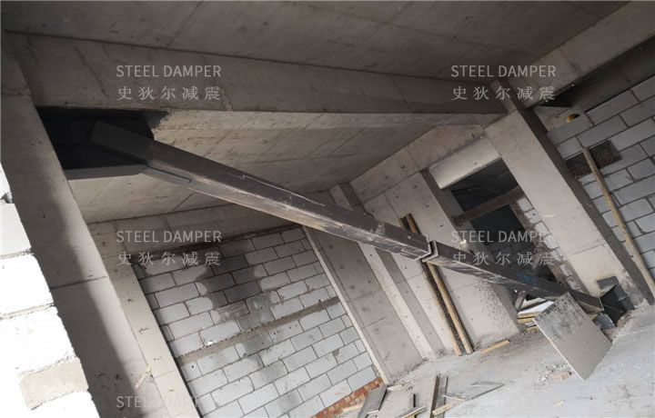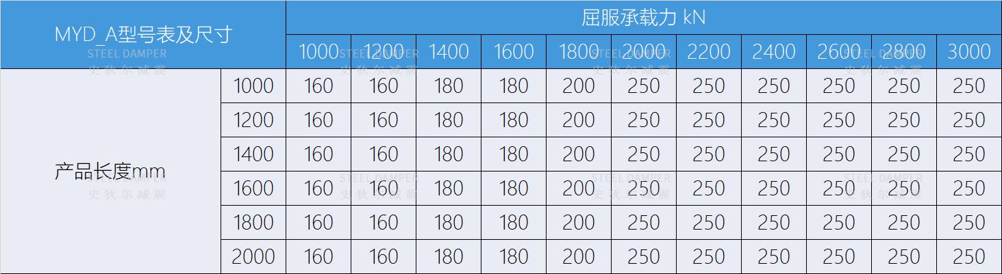 Metal Yield Damper (MYD), as an energy dissipation product that uses metal plastic deformation to dissipate energy, is widely used because of its excellent energy consumption performance, stable mechanical properties, convenient processing, low cost, and convenient maintenance and replacement in building structure system. At present, the common metal yield type dampers mainly use the bending deformation of the metal (that is Curved Metal Yield Damper, MYD_M) or the shear deformation (that is Shear Metal Yield Damper, MYD_V) to dissipate energy. Axial Metal Yield Damper (MYD-A for short) use the axial compression and plastic deformation of metal materials to dissipate seismic energy. Commonly used metal materials are low-yield-strength steel and low-carbon steel.