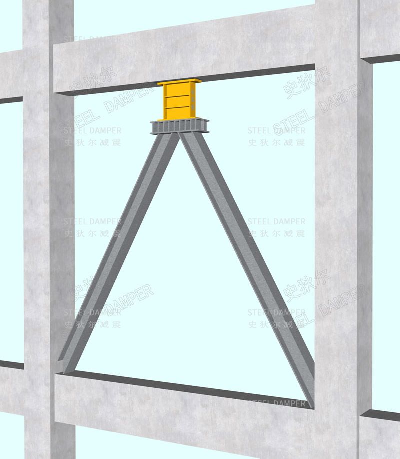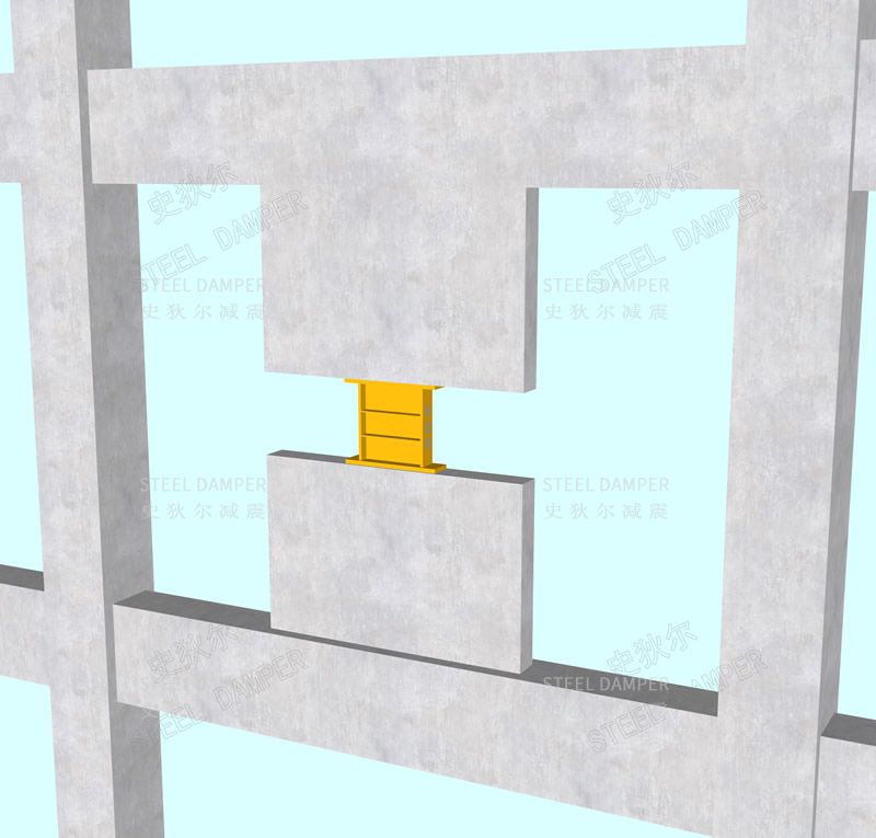 The connection between the energy dissipater and the main structure can generally be divided into wall type, support type, column type, portal type, and armpit type, etc., of which wall type connection and support type connection is commonly used.